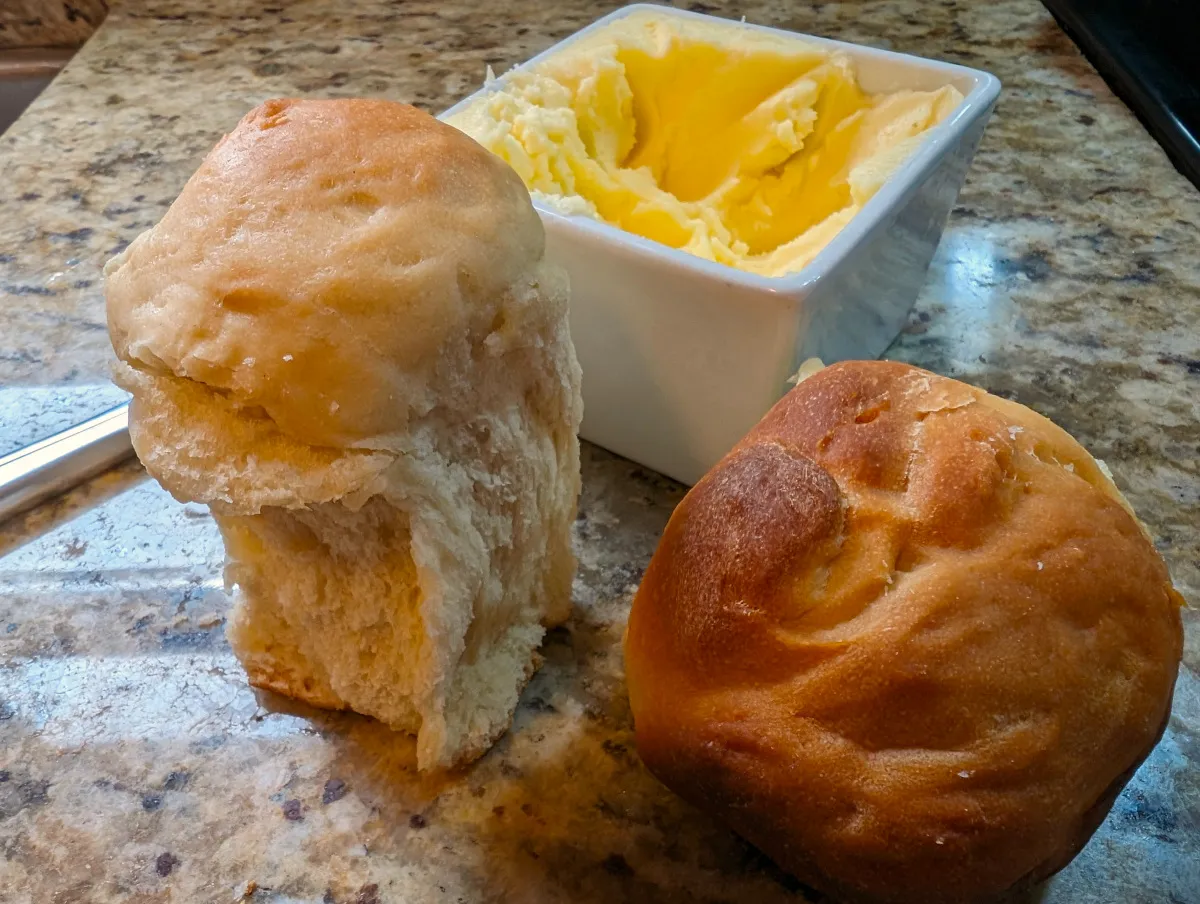 This recipe came from my mom. She would make this for holidays and everyone loved them. This is a nice enriched dough that turns out soft with a super thin crust. Best fresh out of the oven but also great several days later if kept in a air tight container. Step 1 is the recipe I received from my mom, all other steps are my interpretation of “mix as usual”.